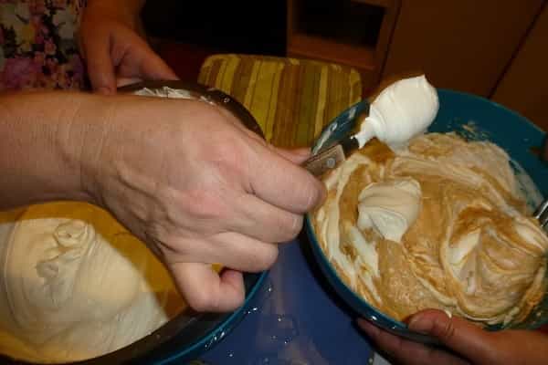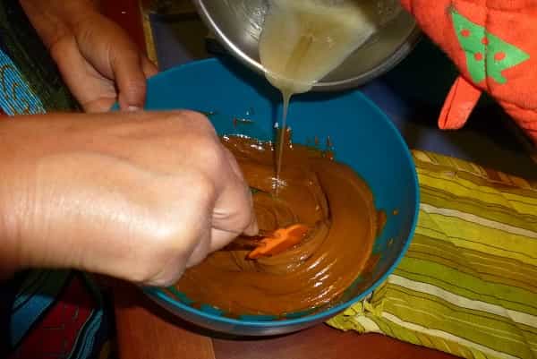 5. Vacía la crema casi a punto chantilly sobre la preparación anterior y revuelve.
