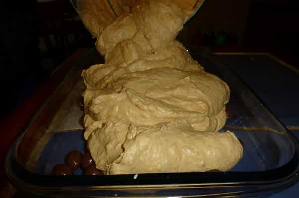 6. Distribuye los Vicios en el fondo de una budinera y luego añade la mezcla del manjar, crema y gelatina.