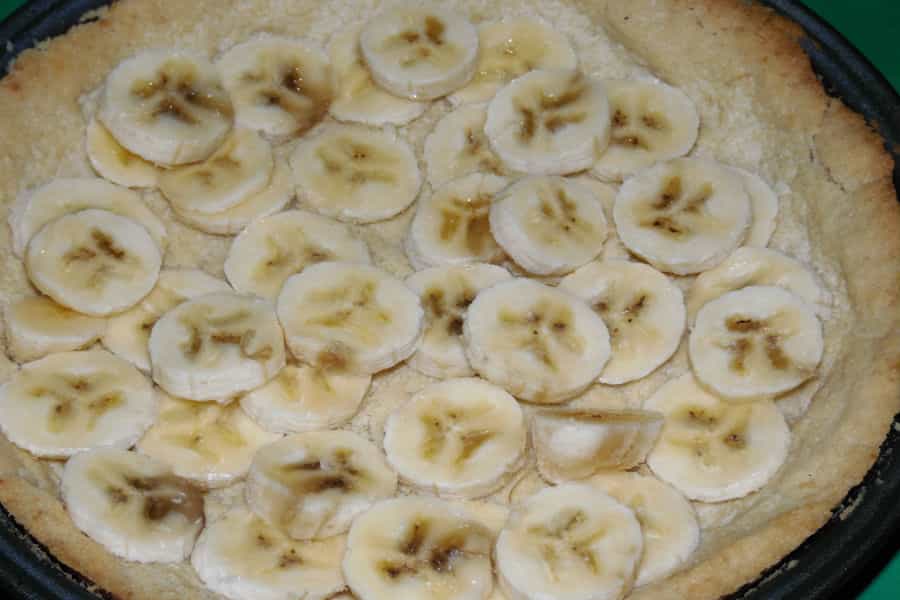 Batimos durante unos minutos hasta alcanzar una pasta compacta. Cuando la masa ya esté horneada, picamos los plátanos y dejamos una capa al fondo.