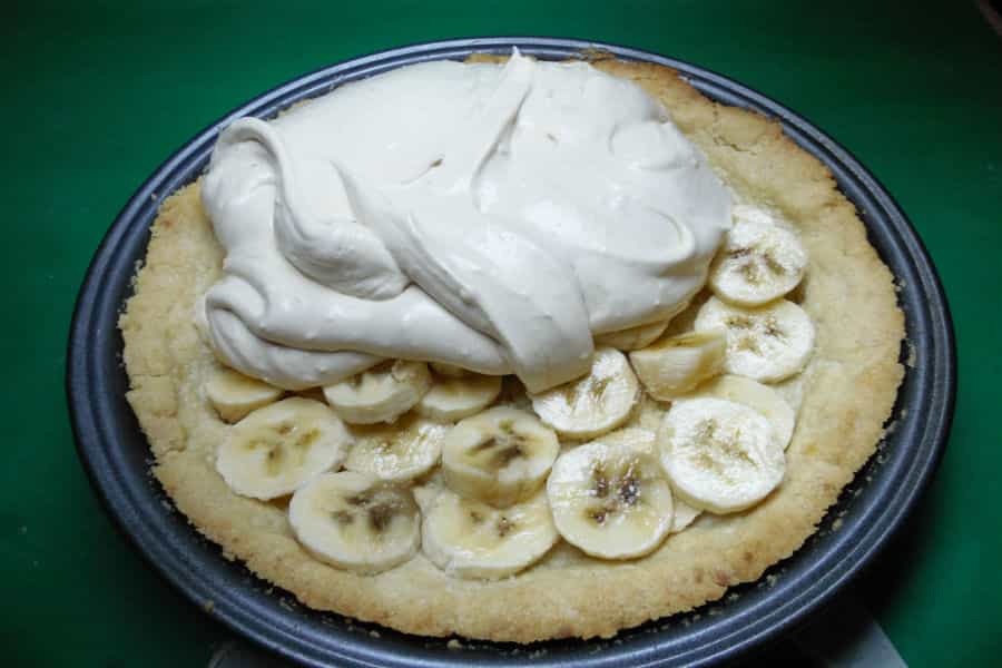 Luego cubrimos esa capa de plátanos con la crema hasta que esté completamente cubierta.
