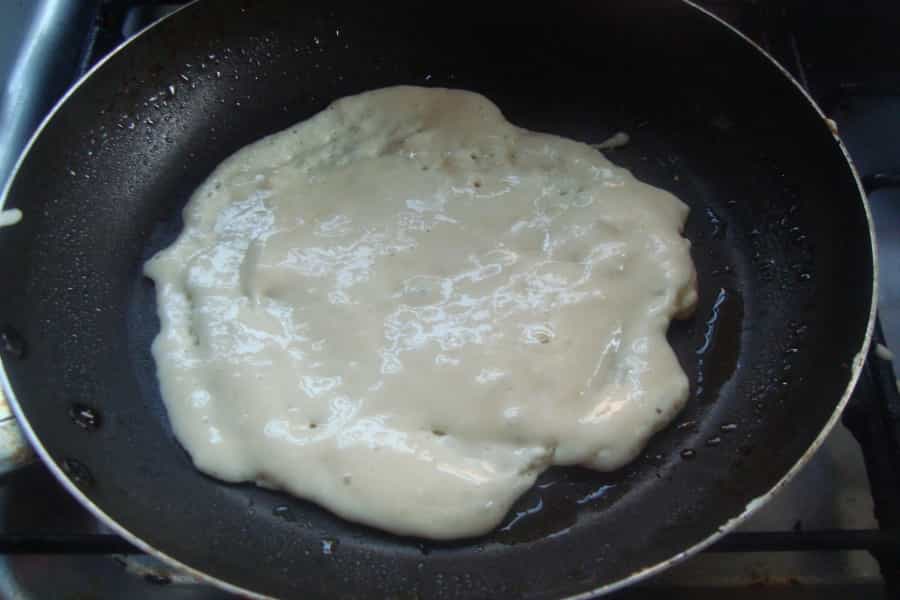 Dejar reposar la masa por 30 minutos en el refrigerador. Transcurrido el tiempo de reposo, verter un cucharon de mezcla en un sartén con apenas un poco de mantequilla caliente. Cocinar hasta que los bordes del hotcakes estén dorados, dar vuelta y cocinar por el otro lado.