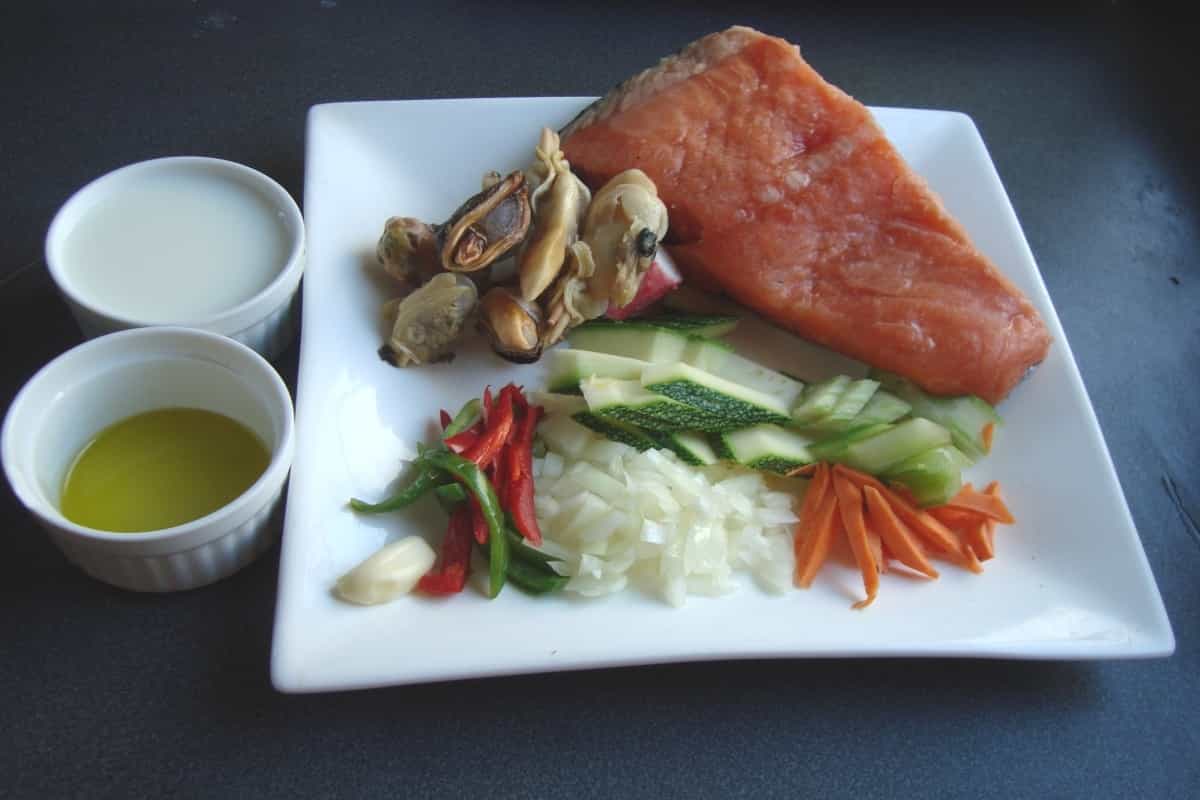 Esta receta mezcla lo mejor de la tierra y el mar. Las más frescas verduras, junto a los mariscos y pescados más deliciosos, dan origen a una preparación realmente sorprendente. Te invitamos a disfrutar de una verdadera explosión de sabor y aroma, un plato único que será el rey de la mesa: Salmón sobre cama de verduras y mariscos, un plato que te sorprenderá con su increíble mezcla de sabores y colores.