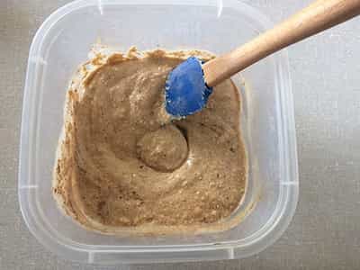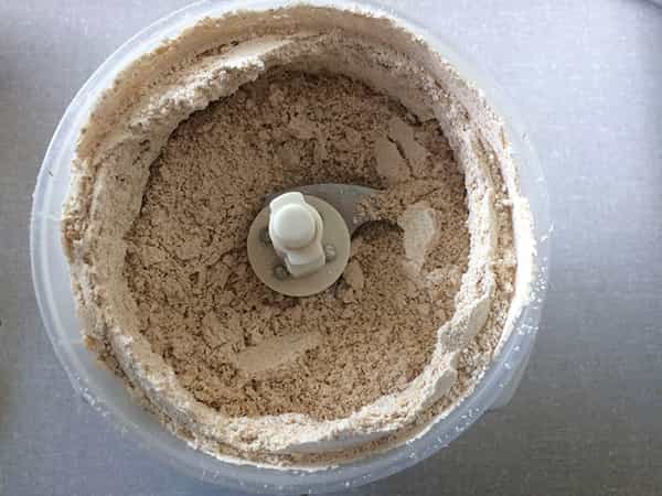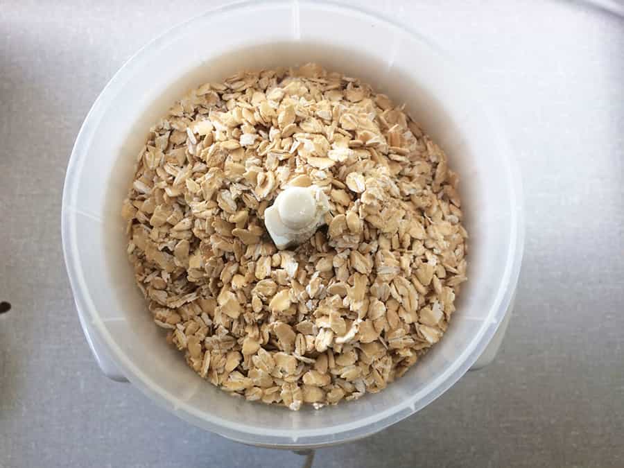 Mientras tanto procesa la avena con la minipimer/licuadora/procesadora hasta que sea un polvo fino y resérvala. Así se hace la harina de avena, pero si quieres suplantarla por otro tipo también puedes ver cómo hacer harina en casa.