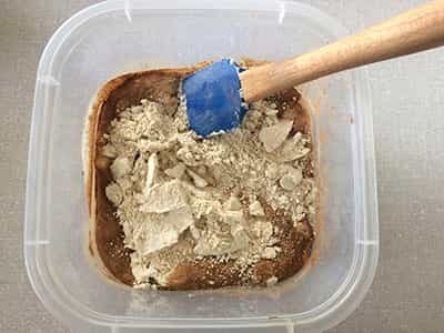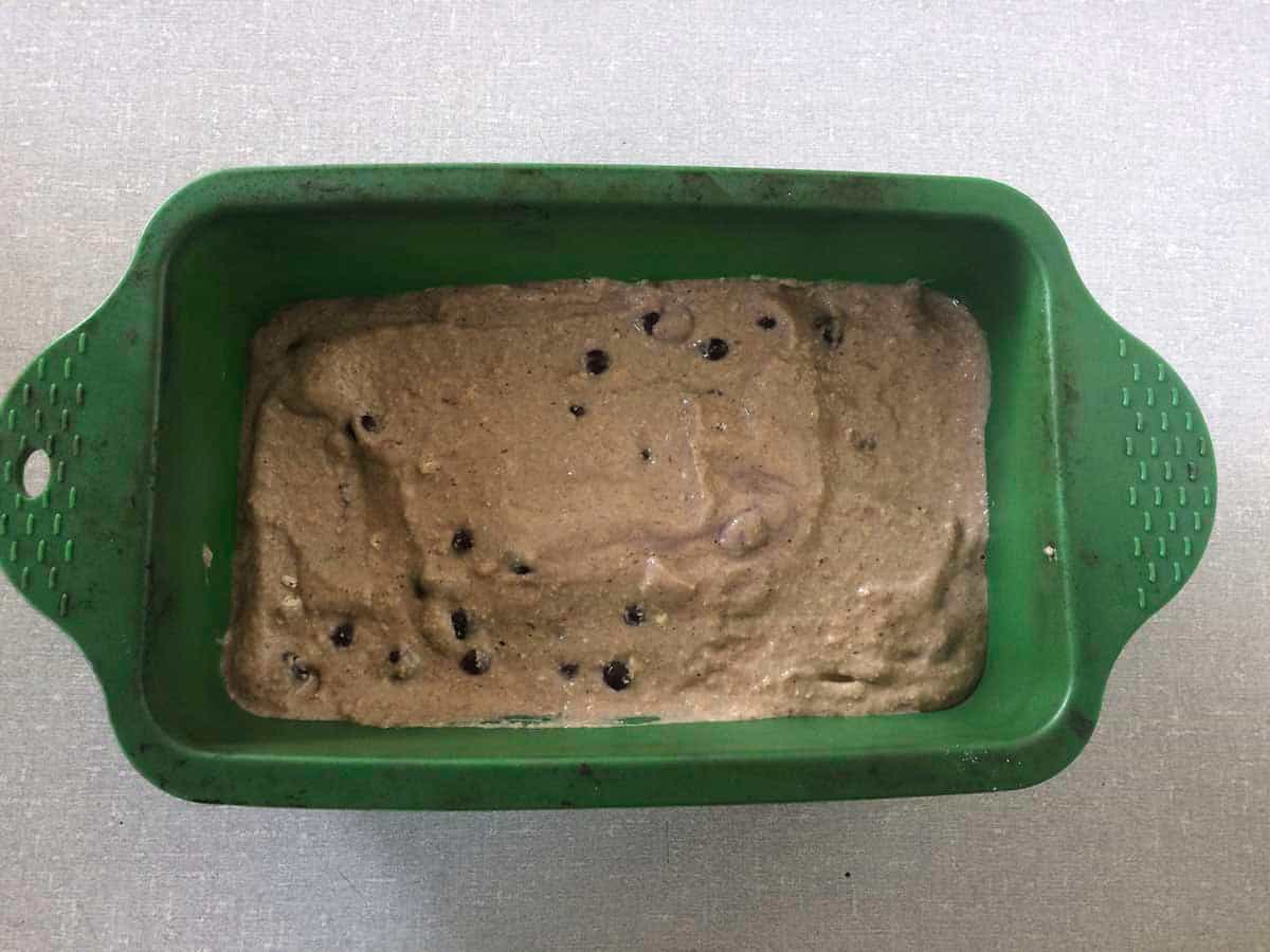 Coloca la preparación en un molde, preferentemente de silicona. Si no tienes uno de estos es necesario que le pases mantequilla y harina al molde para que no se pegue la preparación.