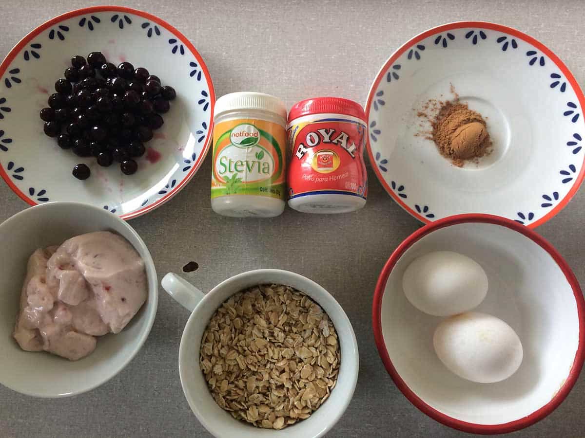 Ahora pasemos a la parte más interesante, a preparar queque de: avena, yogurt y arándanos.