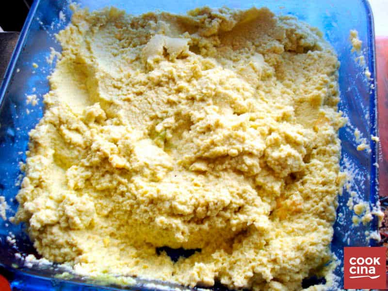 • Triturar los garbanzos (deben haber sido remojados la noche anterior) hasta que formen una masa húmeda y compacta. No deben quedar demasiado molidos.