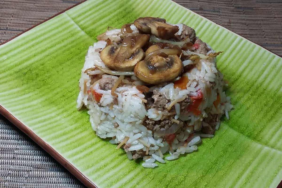 Cómo hacer una corona de arroz con picadillo de carne y brotes
