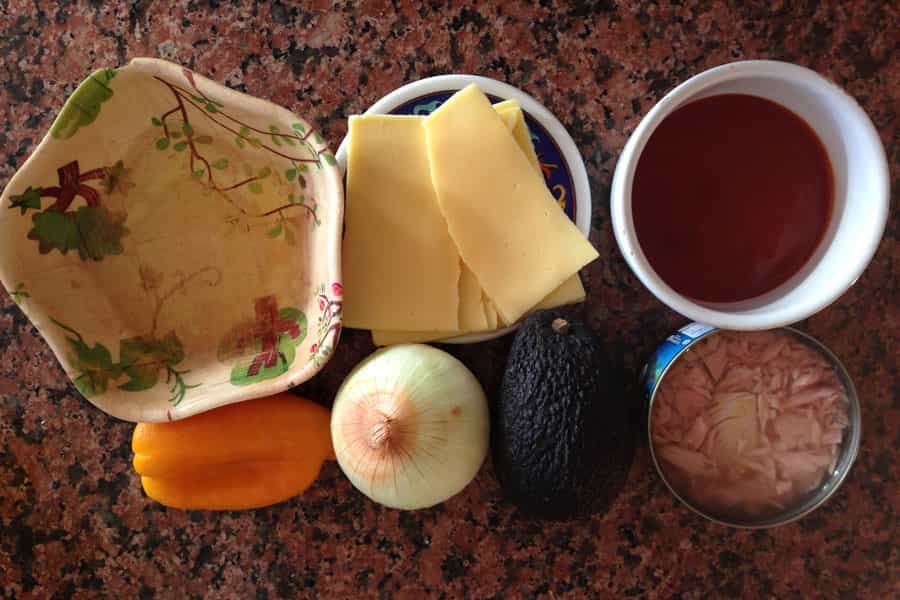 Colocas la salsa de tomate, la palta, la cebolla y el pimentón. Un poco de pimienta y orégano. La meter al horno por última vez unos 5 a 6 minutos y al final agregarás el queso para que se derrita con el calor generado.