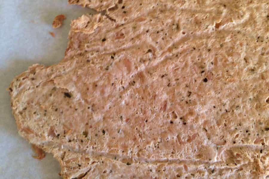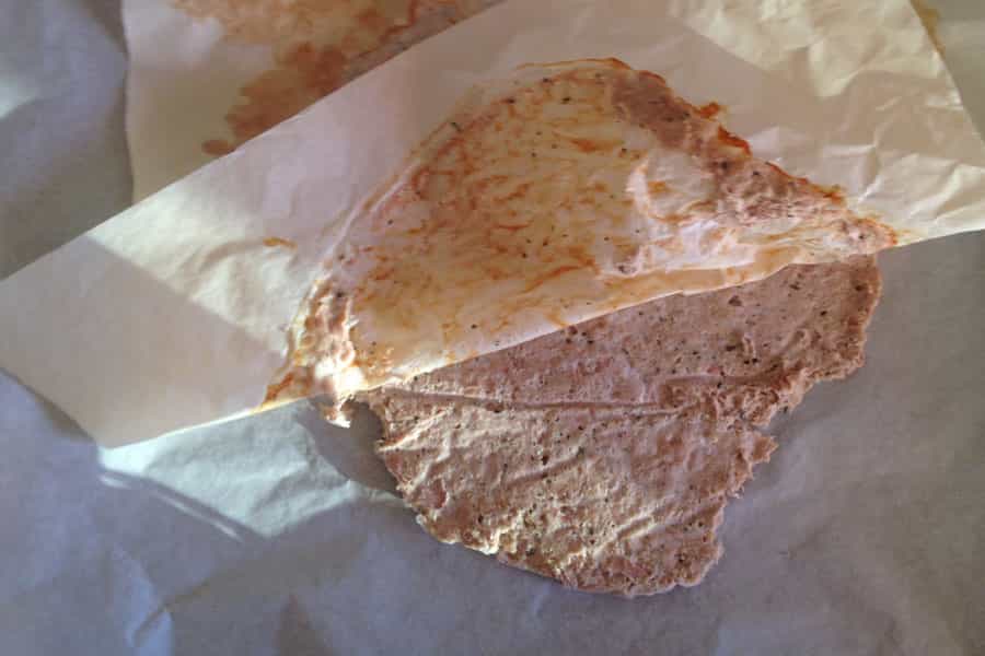 Cuando el primer lado esté listo, tendrás que darla vuelta cuidadosamente. Siempre manteniendo el papel de mantequilla para que esta no se pegue a la bandeja. Es en esta parte donde el grosor de la masa puede cambiarlo todo. Si la hacer muy delgada, terminará pegada al papel. Cuando hayas logrado darle la vuelta, la pondrás otros 7 minutos más al horno.