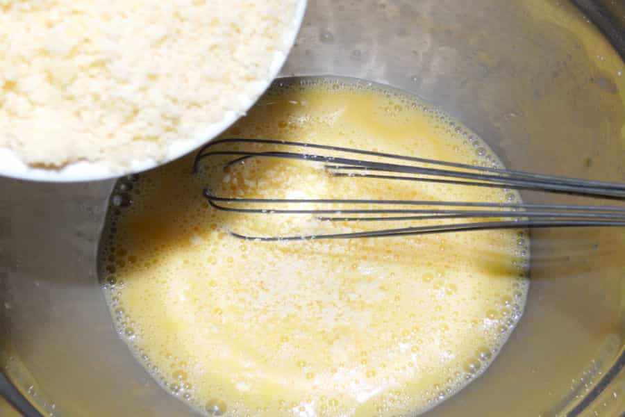 Agrega lentamente el queso y 150 grs de harina. Mezcla hasta obtener una masa homogénea.