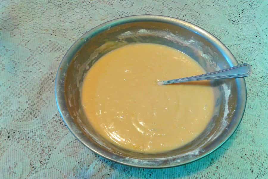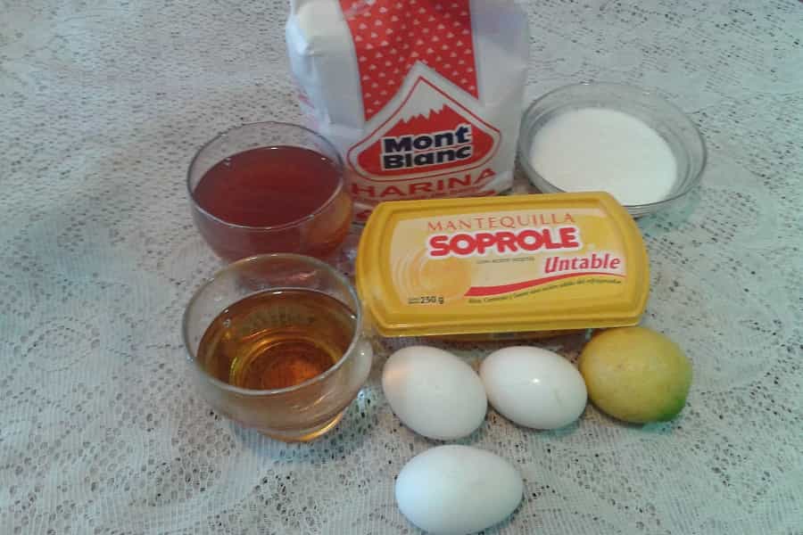 1. Lo primero es hacer el bizcocho, que es bien similar a un queque. En un recipiente agrega los tres huevos; bate con fuerza hasta que queden totalmente juntos. Incorpora una taza de azúcar y vuelve a batir. Luego, ralla el limón, añadiendo las cáscaras a la mezcla. Una vez listo este paso, debes verter las dos tazas de harina con los polvos de hornear. Quedará un poco seco, así es que la mejor solución es incorporarle jugo a la mezcla.