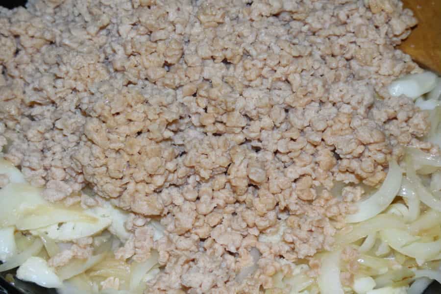Luego pelamos las cebollas y las picamos en pluma. Las freímos en un sartén a fuego medio, junto con los ajos. Con este ingrediente la cantidad es a gusto.