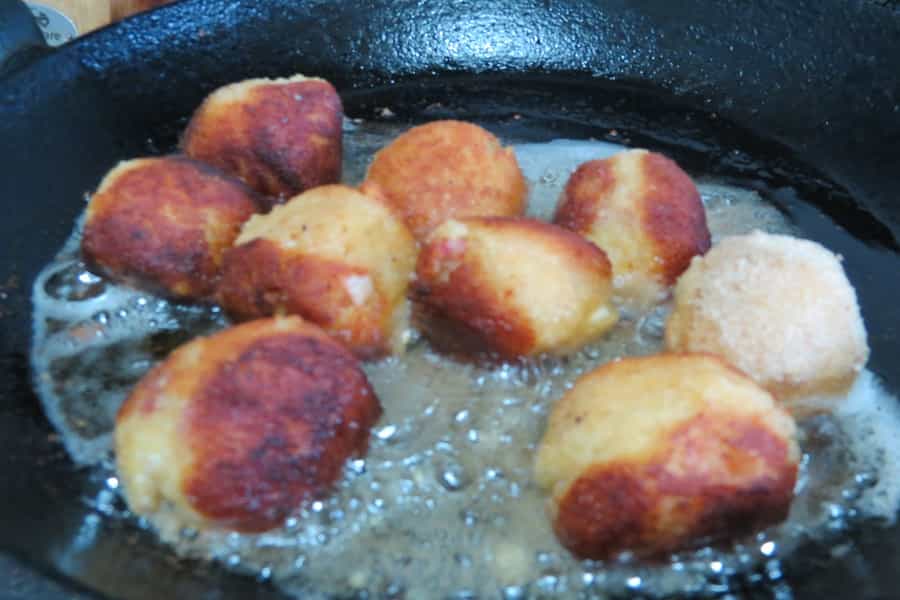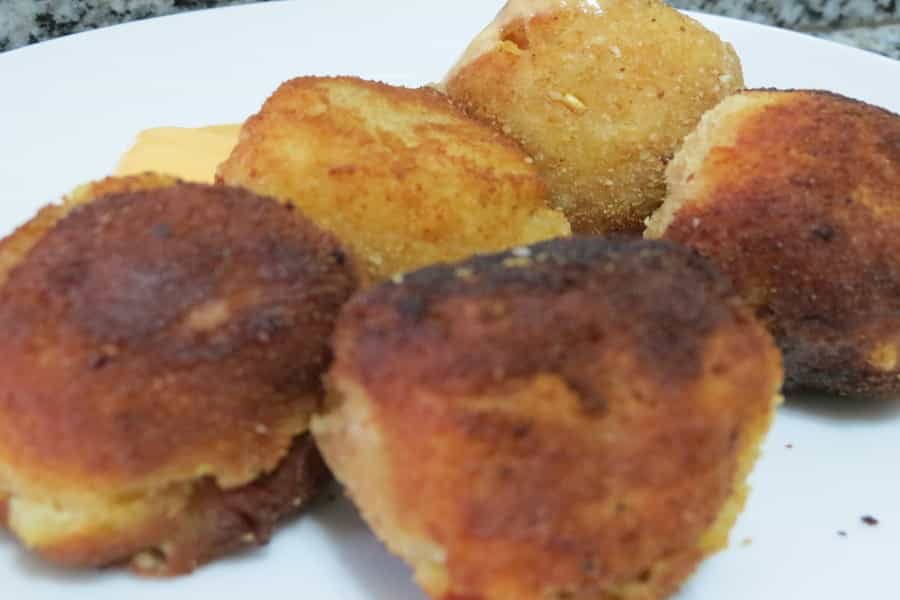 Una vez mezclado y tibio que permita manipular, formar bolitas que serán las croquetas