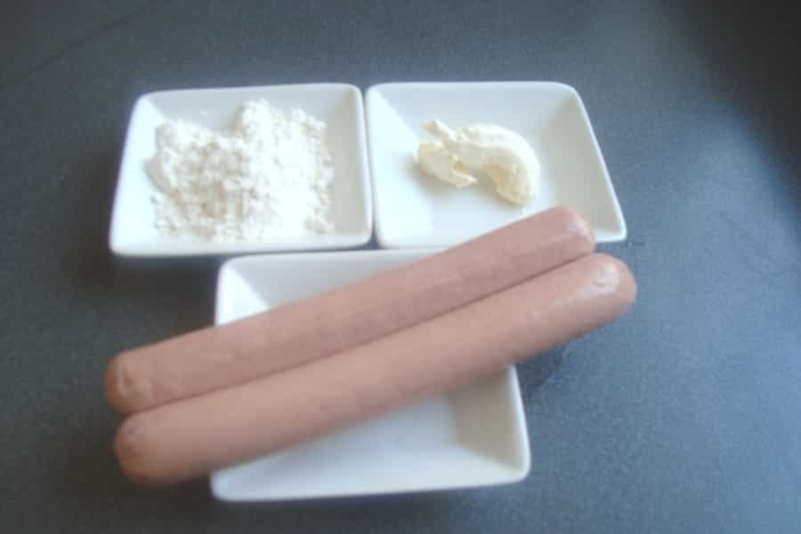 Cubrir la masa con un paño limpio y dejar reposar en un lugar tibio por 30 minutos. Transcurrido el tiempo de reposo, extender la masa en una mesa enharinada, cortar rectángulos y envolver las vienesas. Hacer 5 cortes cuidando de no cortar totalmente. Unir los extremos y formar una flor.