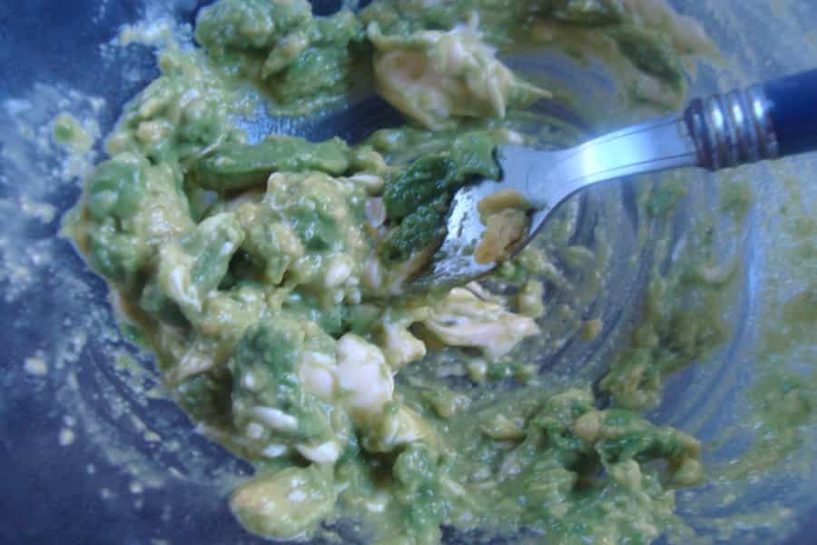 Para la pasta de palta, en un recipiente mezclar la palta y ½ cebolla cortada en cuadros pequeños, agregar unas gotas de jugo de limón, sazonar a gusto.