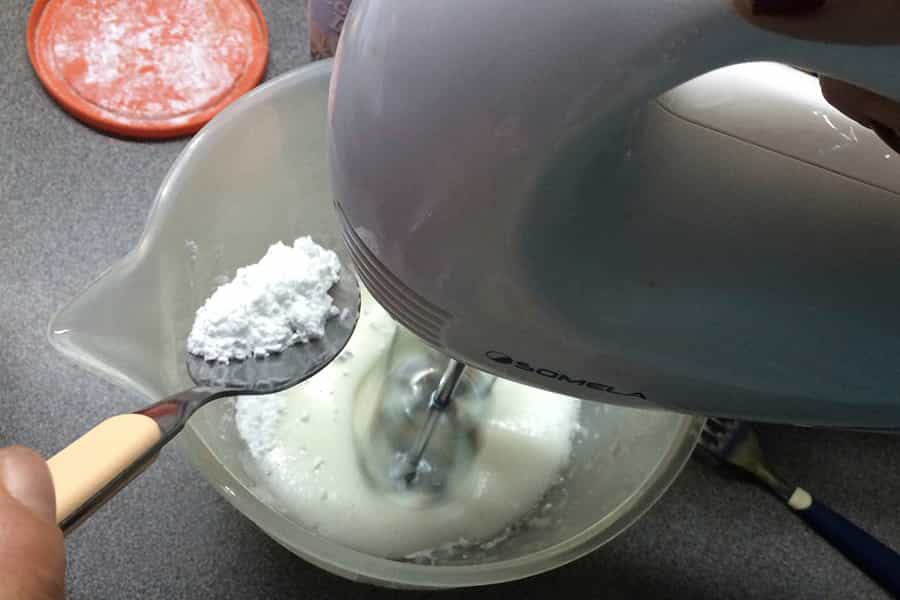 Luego, iremos añadiendo de a poco el azúcar, y podremos ver cómo comienza a espesarse nuestra mezcla. En esta etapa batiremos a velocidad media.