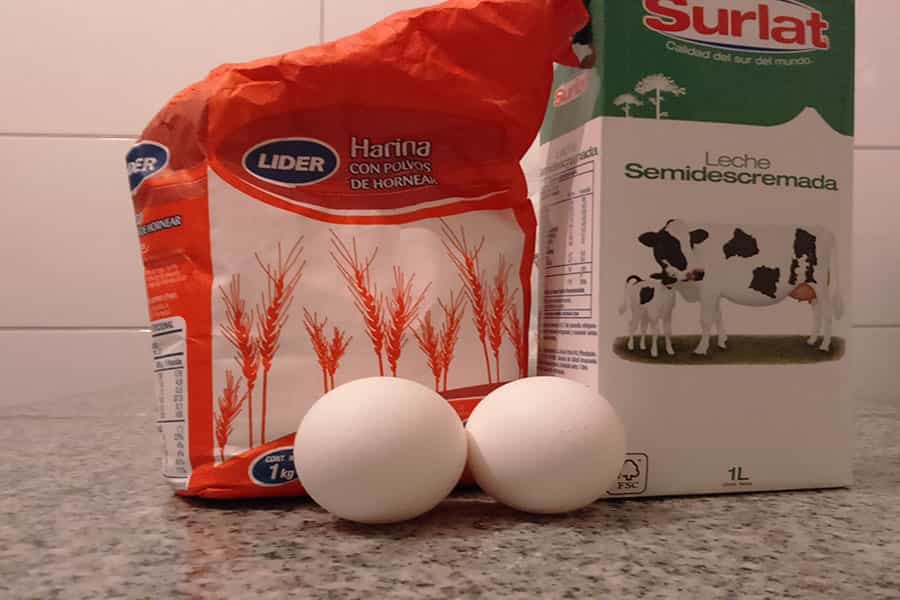 Lo primero que tenemos que haces es mezclar la harina, los huevos y la leche en un bowl hasta que no queden grumos y la textura de la masa sea casi líquida.