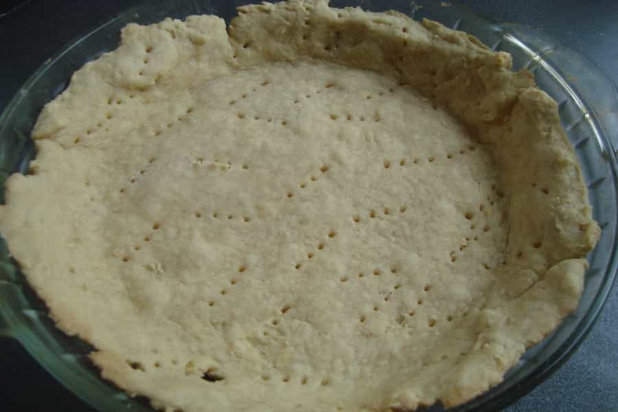 Reservar ¼ de la masa, en una mesa enharinada y con ayuda de un uslero estirar el resto de masa y disponerla en una fuente de manera rústica, pinchar con un tenedor y cocinar a fuego medio en horno precalentado por 10 minutos. Reservar.