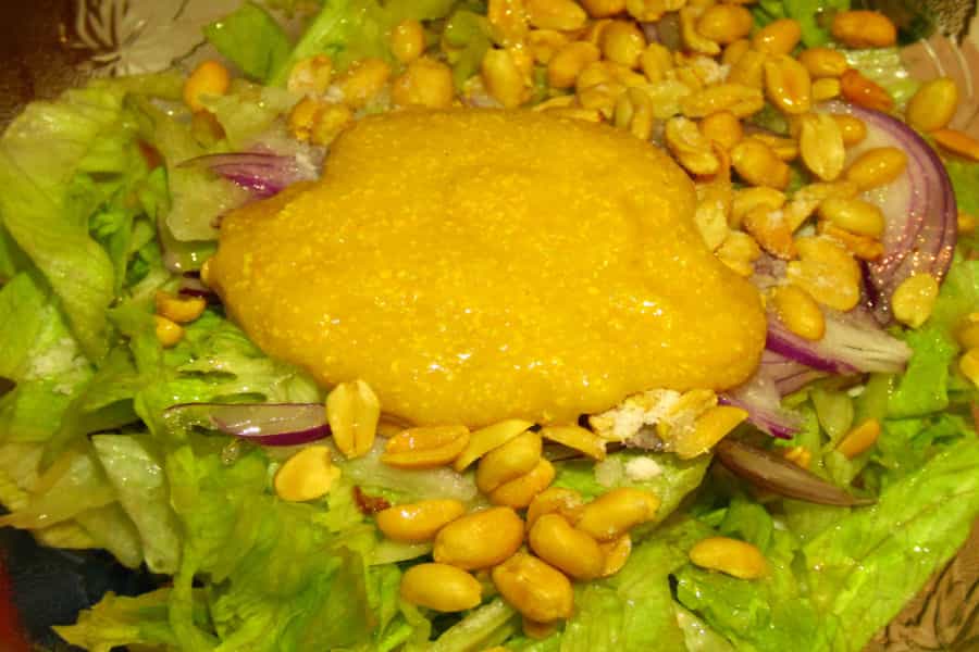 Revolvemos bien hasta lograr que todos los ingredientes se impregnen con la mostaza.