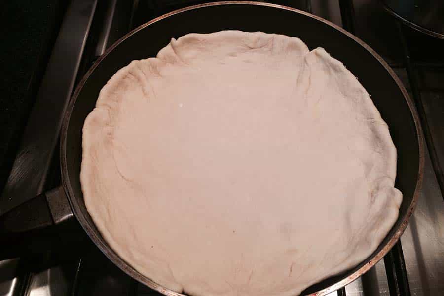 Dejaremos todo en el sartén hasta que veamos que nuestra base de pizza comience a dorarse (debemos revisar con una espátula, levantando la masa). Como nuestro sartén tenía aceite será muy fácil levantar la masa sin que se pegue. Cuando vean que la masa ya está dorada y crocante, es cuando taparemos nuestro sartén con una tapa de olla que le haga y lo dejaremos por 7 minutos aproximadamente para que se termine de cocinar. Luego de que pasen los minutos ya estaremos listos para disfrutar de una riquísima pizza sin horno, la cual es súper fácil de hacer y muy rápido.