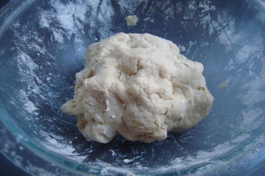 En un recipiente mezclar harina con la mantequilla fría, con las manos integrar hasta formar un arenado, añadir 1 huevo, unir hasta formar una masa suave y lisa.