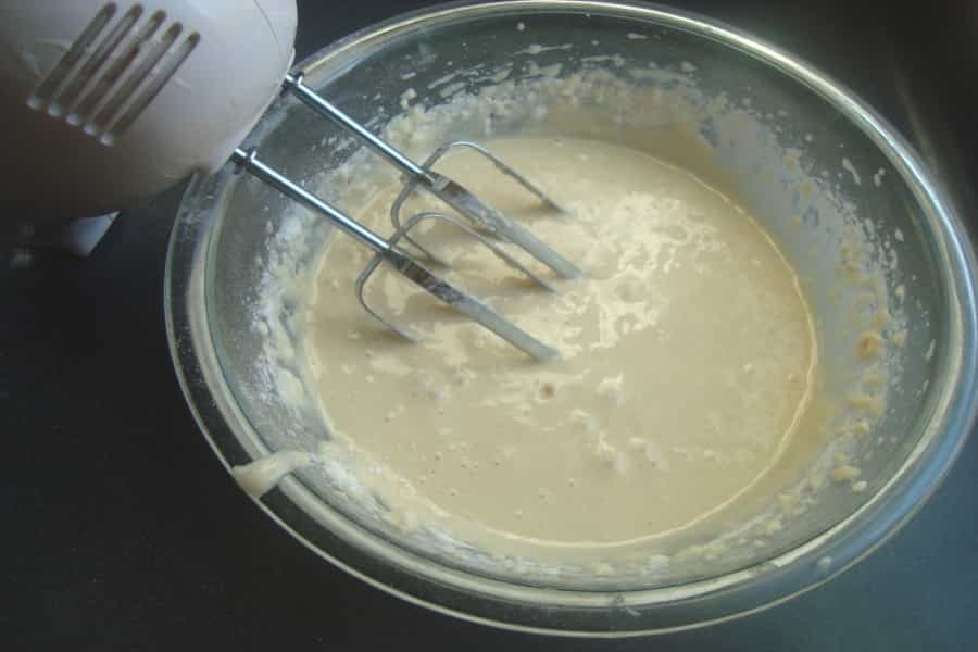 Dejar reposar la masa por 30 minutos en el refrigerador. Transcurrido el tiempo de reposo, verter un cucharon de mezcla en un sartén con apenas un poco de mantequilla caliente. Cocinar hasta que los bordes del hotcakes estén dorados, dar vuelta y cocinar por el otro lado.