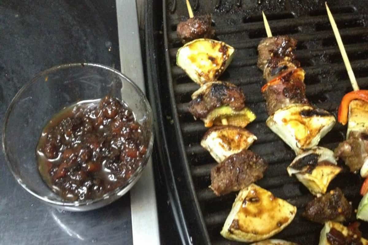 6. En los primeros minutos de cocción de las brochetas, humedecerlas con la salsa de ciruelas.