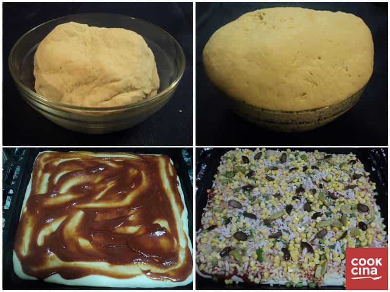 • Una vez lista, déjala tapada con papel alusa durante unos 25 minutos para que crezca. Busca un lugar cálido donde dejar la masa, de esa forma crecerá más.