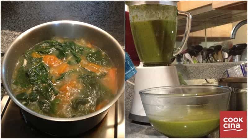 • Vierte la sopa en una fuente y una vez que esté todo licuado, mézclalo bien.
