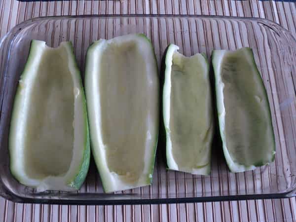 Preparación Lo primero que debes hacer es cocer los zapallos italianos, unos 15 a 20 minutos está bien. La idea es que no queden duros, pero tampoco recocidos. Mientras esperas, pica la cebolla en pluma y fríela, aliñándola con la mitad de un caldo de verduras. Limpia los champiñones y pícalos para luego saltearlos en mantequilla. En otra olla cuece 1½ taza de choclo. Ya tenemos listas las verduras que usaremos para nuestro relleno. Recuerda que siempre estos son sólo sugerencias, si prefieres usar otros vegetales como zanahoria, berenjena o cebollín, no hay problemas. Cuando los zapallos estén listos, divídelos en dos con un corte a lo largo. Comienza a retirarles el interior, ayudándote con una cuchara. Debes tener mucho cuidado de no raspar muy fuerte, para que no se vaya a romper nuestro zapallo. Mezcla un poco del zapallo que retiraste con la cebolla y fríelo un poco más.