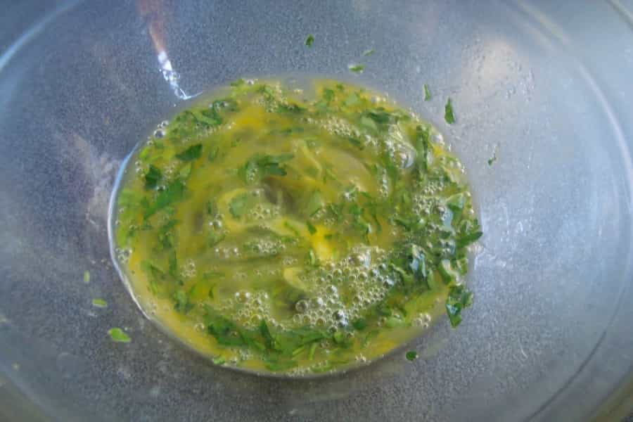 En un recipiente mezclar los huevos batidos y el cilantro, salpimentar a gusto.