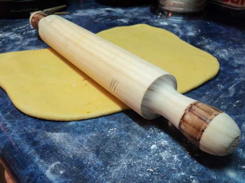Con la ayuda de un uslero, estirar la masa para dejarla con un espesor máximo de medio centímetro. Corta la masa en círculos de 10 cms aproximadamente. Realice perforaciones con un tenedor.