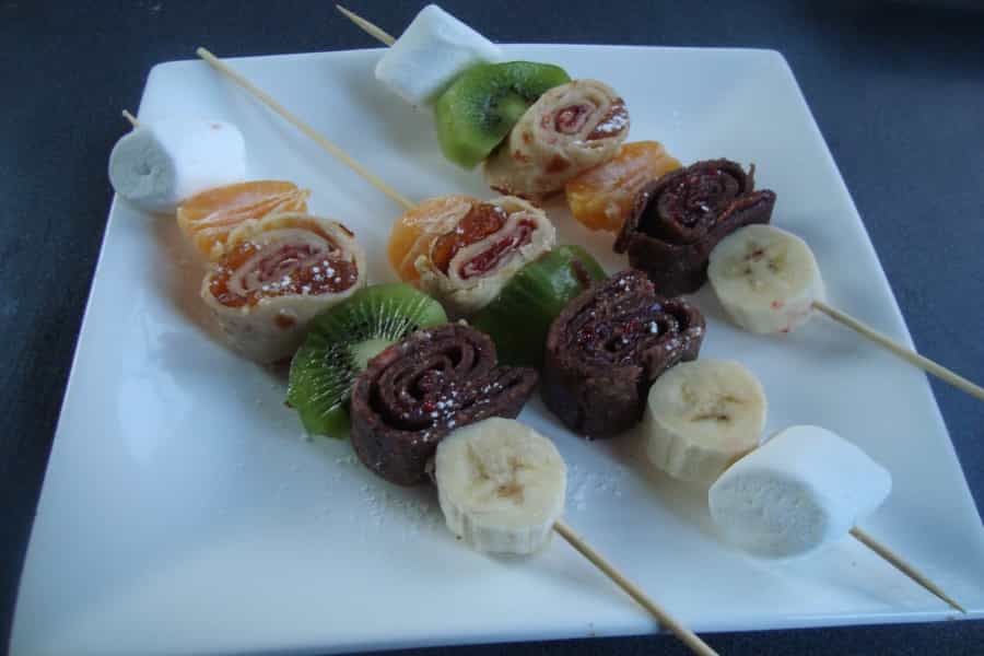 Prepara Brochetas de Panqueques y Frutas