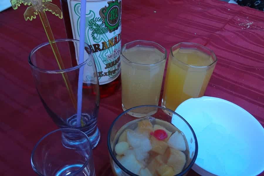 1 medida de juego de naranja 1 medida de jugo de piña 1/2 medida de granadina Macedonia (o frutas de la estación) Hielo Bombilla o revolvedor para decorar Preparación: Para medir cada ingrediente, si no tienes un medidor de bar o una coctelera, puedes usar un vaso más pequeño que el que vas a usar para el trago final. Ese vaso debes llenarlo hasta la mitad con granadina y ponerlo en el vaso. Como la granadina es más pesada que el resto de los ingredientes, se va a quedar en el fondo.